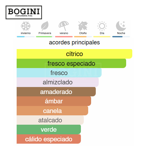 Perfil aromático: fresco y especiado al inicio con una energía cítrica, evolucionando a un corazón equilibrado y sofisticado, y terminando con una estela masculina, cálida y duradera que subraya presencia y magnetismo sin ser abrumadora. Este equilibrio lo hace versátil para uso diario, salidas nocturnas o eventos especiales.